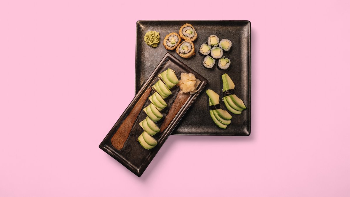 2x avocado nigiri 6x avocado asupara 6x avocado maki 3x crunchy avocado