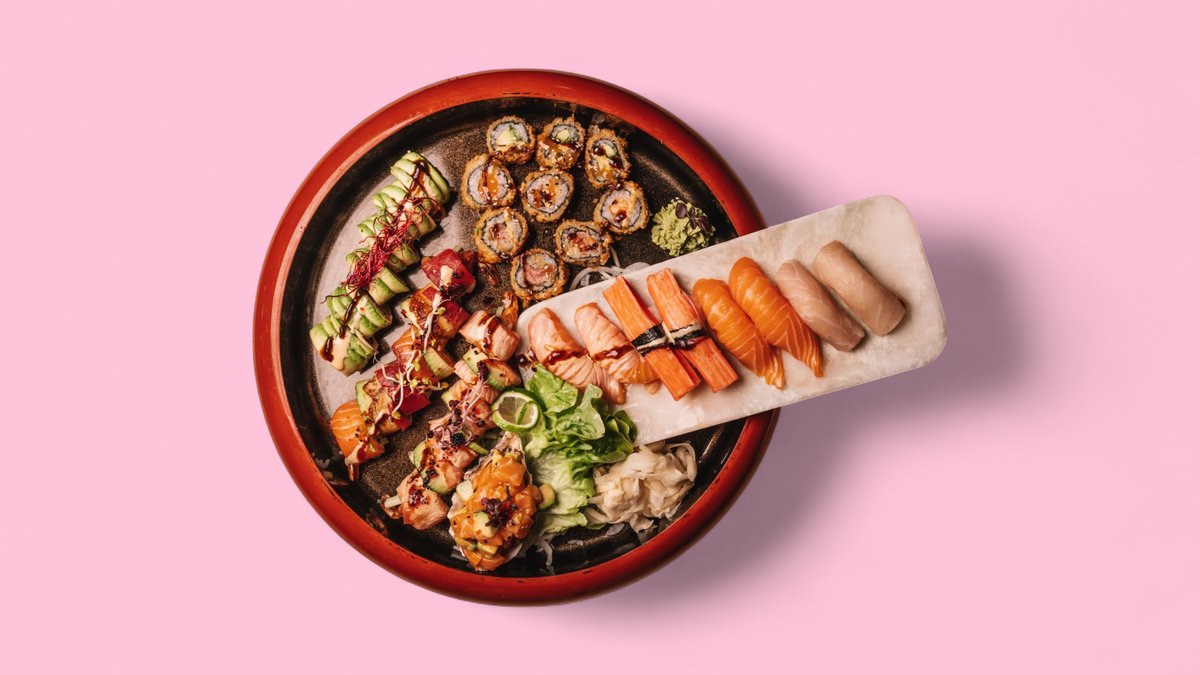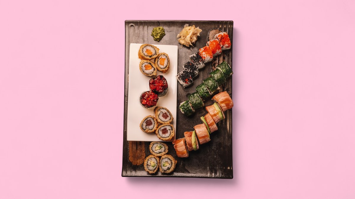 6x origami rainbow 1x salmon tartare 6x avocado on top salmon 3x crunchy salmon 3x crunchy tuna 3x crunchy avocado 6x tiger roll 2x sake nigiri 2x flamed sake nigiri 2x hamachi nigiri 2x surimi nigiri Contains alcohol, not suitable for children and pregnant women