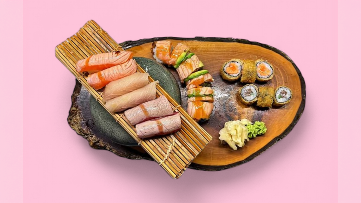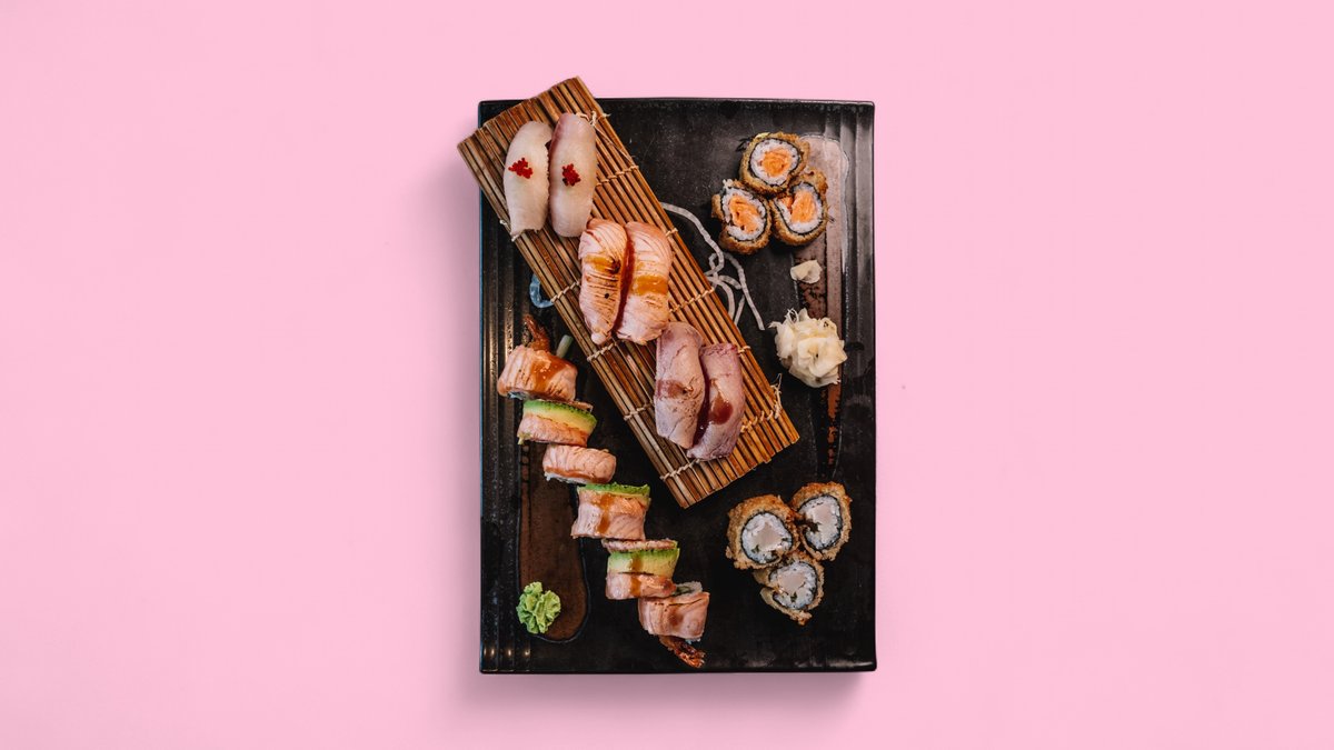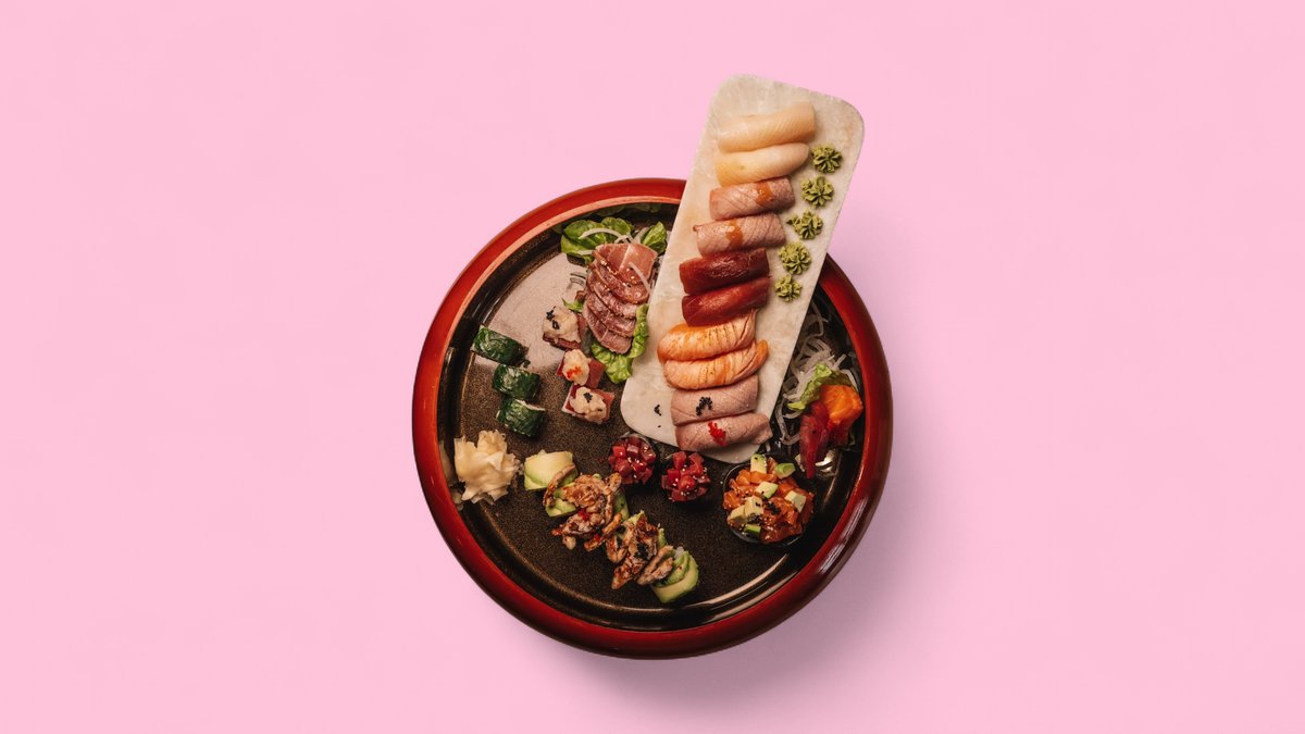 2x flamed tuna nigiri 3x eskimo roll 3x spinach veggie 6x spider roll 2x sashimi salmon 2x sashimi tuna 1x salmon tartare 1x sashimi steak 2x toro nigiri 2x gunkan nigiri 2x hamachi nigiri 2x sake nigiri 2x flamed sake nigiri 2x tuna nigiri Contains alcohol, not suitable for children and pregnant women