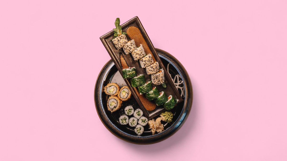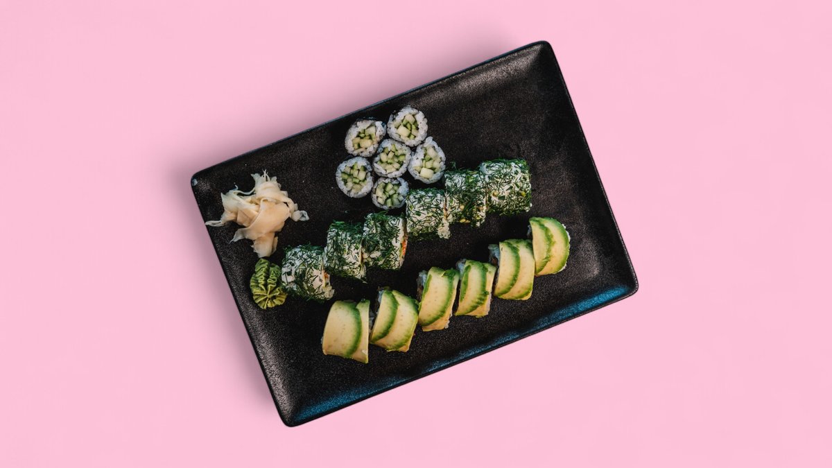6x spinach veggie 6x cucumber maki 6x Mediterranean veggie inside out 3x crunchy avocado