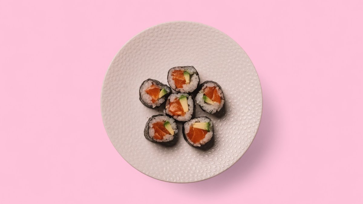 6 pieces of salmon, avocado