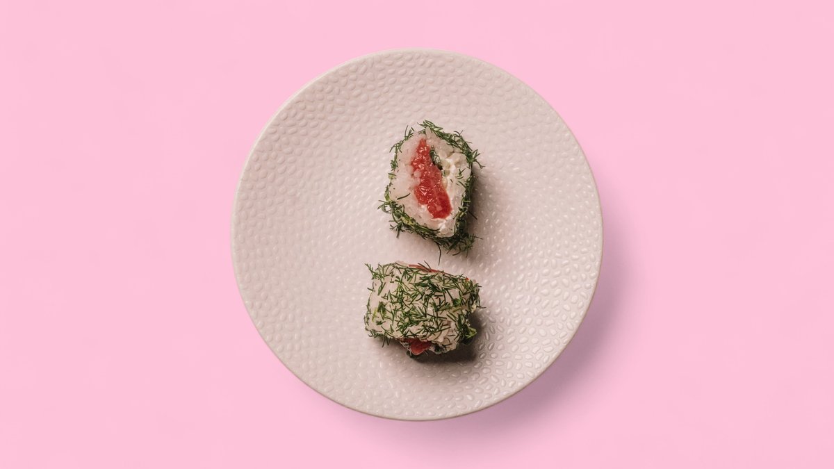 with tempura prawns, cream cheese, cucumbers, dill and chives
