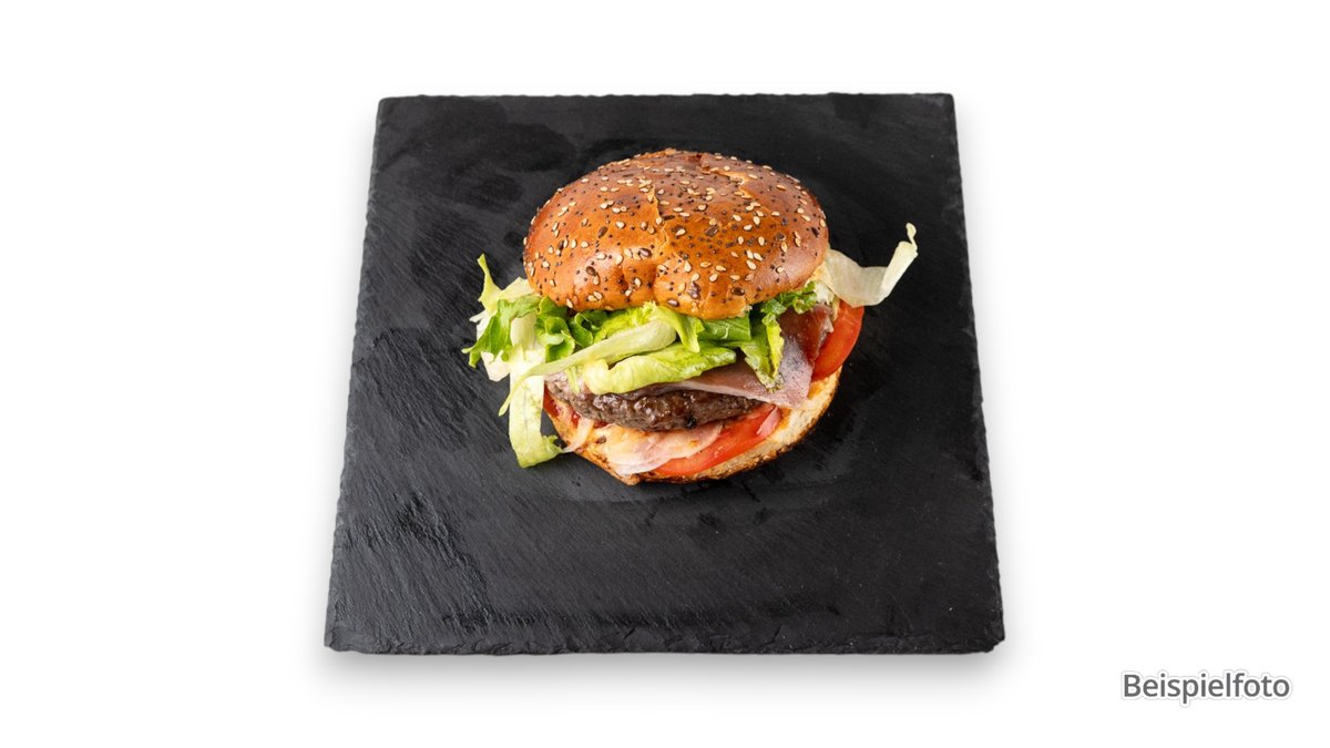 with tomato sauce, turkey ham, champignons, beef ham and basil