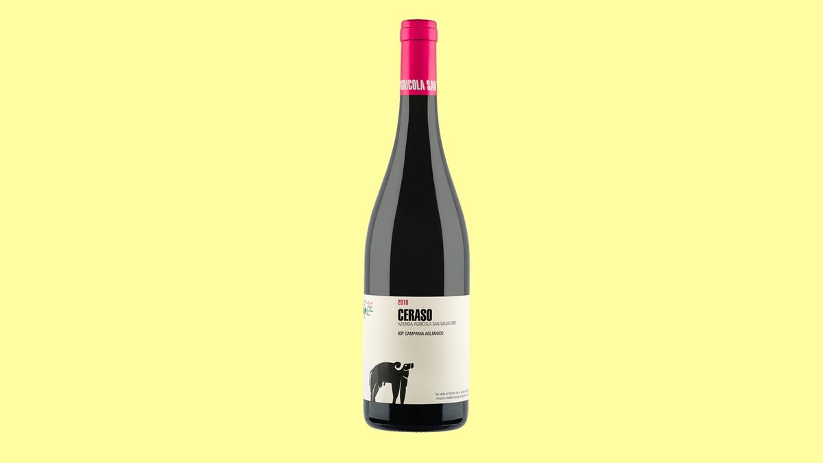 100% Aglianico, IGP Paestum, San Salvatore. A deep dark red wine with an explosive aroma of cocoa, tobacco, and fruit. Dry.