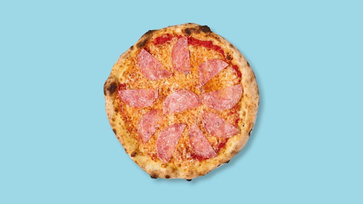 mit scharfer Salami vom Schwein, Paprika und roten Zwiebeln