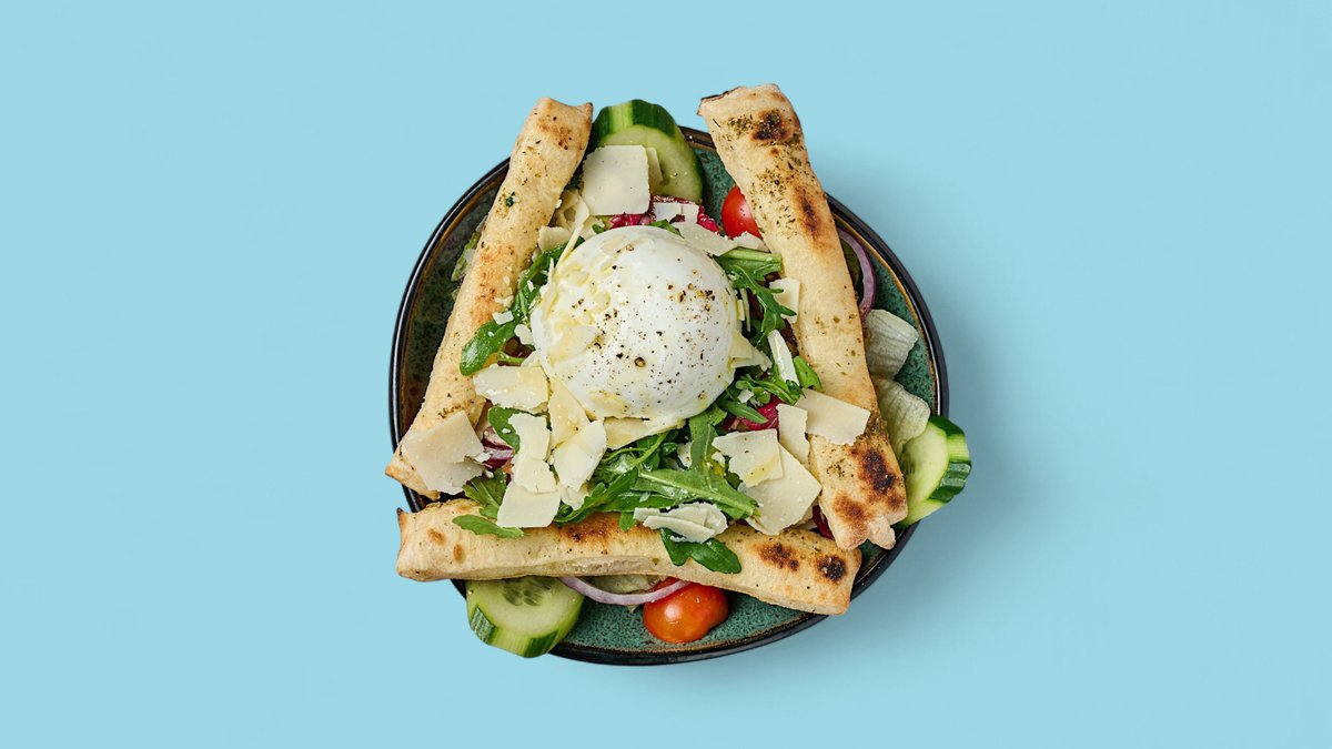 mit Rucola, Burrata, Parmesan und einem Dressing deiner Wahl