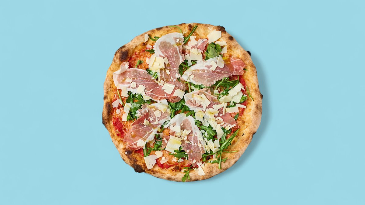 mit Rucola, Parmaschinken vom Schwein (San Daniele) und Parmesan