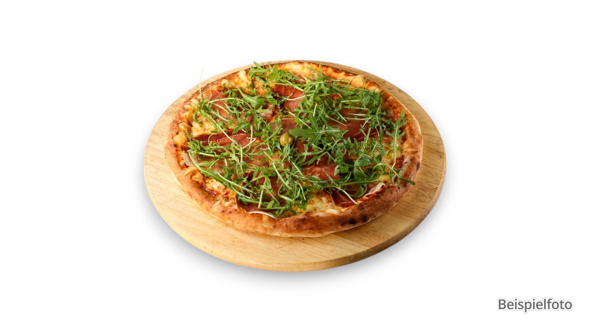 mit Schweineschinken, pikanter Schweinesalami und Champignons