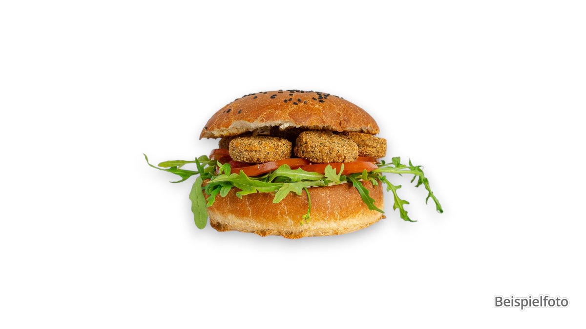 aus ca. 180 g Rinderhackfleisch mit Laugen-Brioche-Brötchen, Rindersucuk, Gurkenrelish, roten Zwiebeln, knusprigen Kartoffelscheiben und Sour Cream