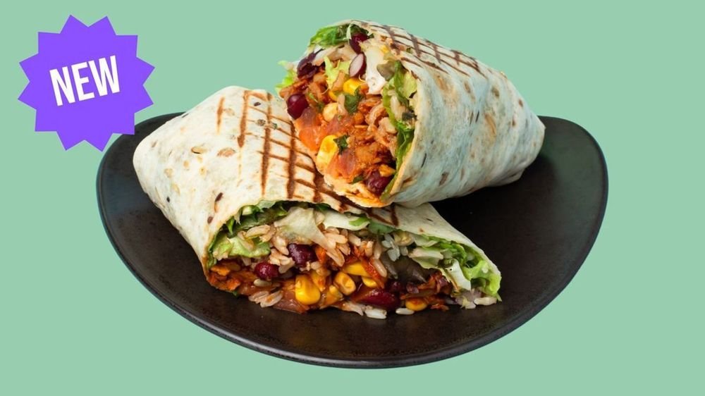 Reis, plant-based Meat, planted. Pulled BBQ, Brokkoli, Mango, Paprika, Indian Curry Sauce, Chili Flocken, Tortillas