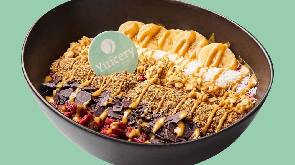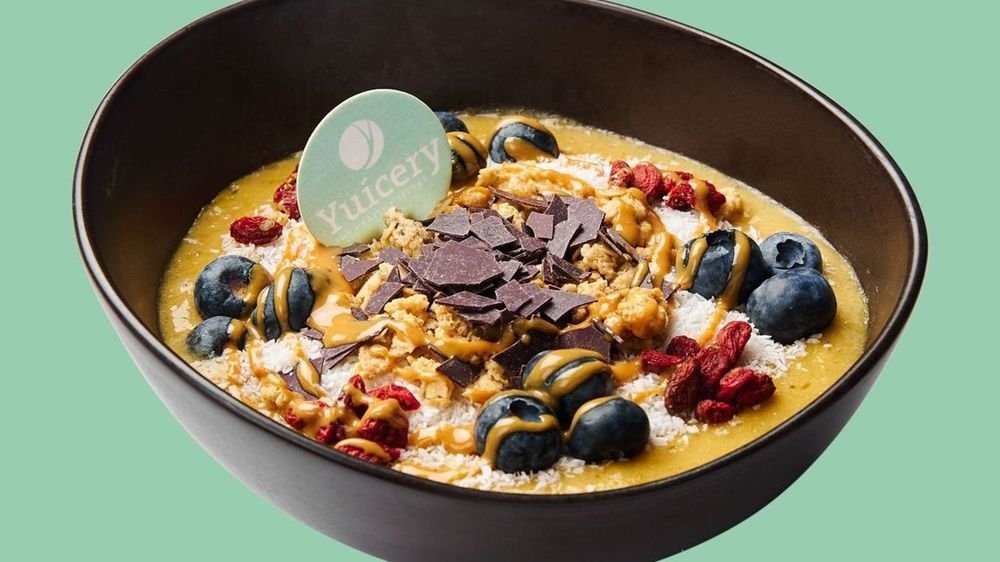 Bananas, Blueberries, Açai, Orange Juice, Double-Granola, Coconut Chips, Dark Chocolate, Goji Berries, Chia Seeds, Bananas, Home-made Peanut Butter