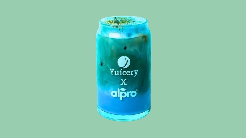 Oat Drink, Ice, Matcha Powder, Blue Spirulina Powder, Vanilla Syrup