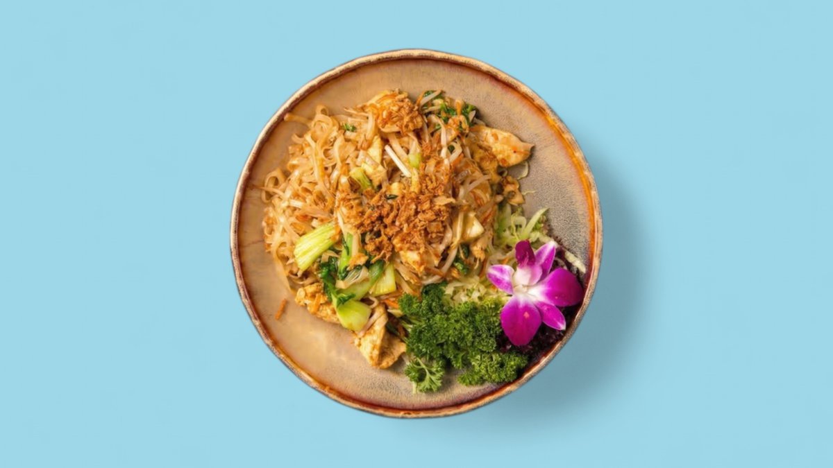 fried glass noodles with pak choi, bean sprouts, carrots, coriander, fried onions, peanuts and an ingredient of your choice