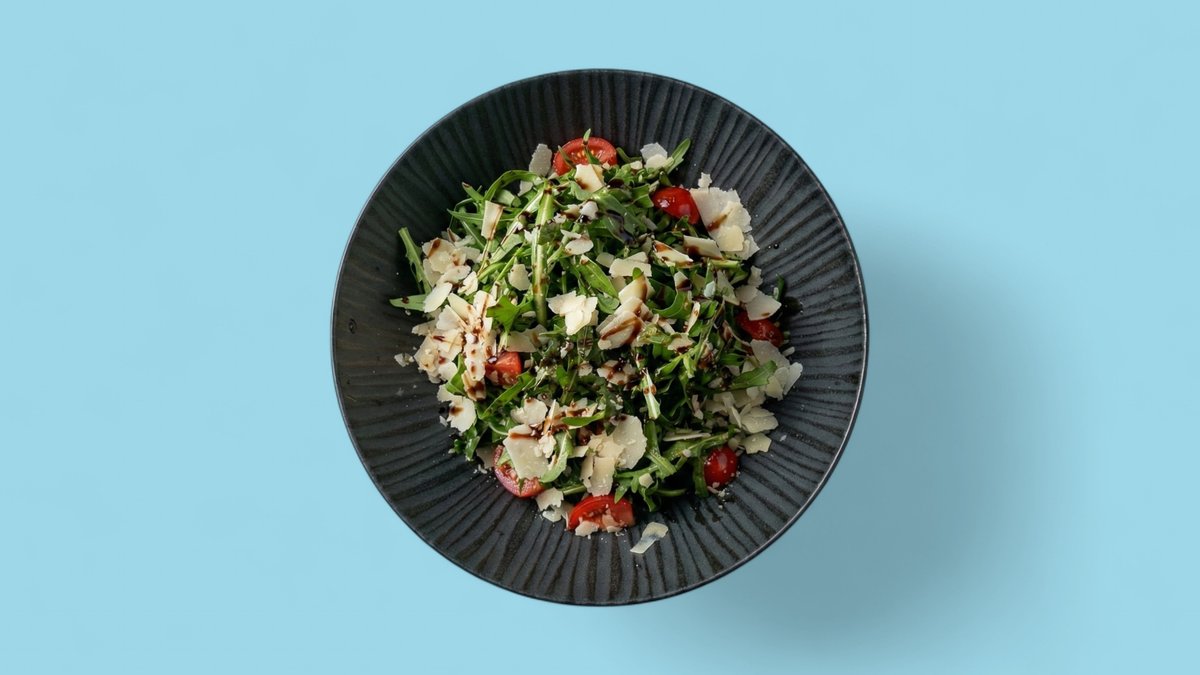 rocket salad with cherry tomatoes, Parmesan and balsamic cream