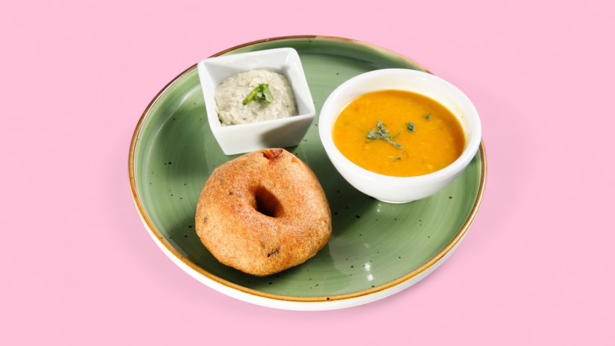 1 Stück Donutförmiger Linsen-Snack, innen weich und außen knusprig, mit Pfeffer, Curryblättern und Zwiebeln