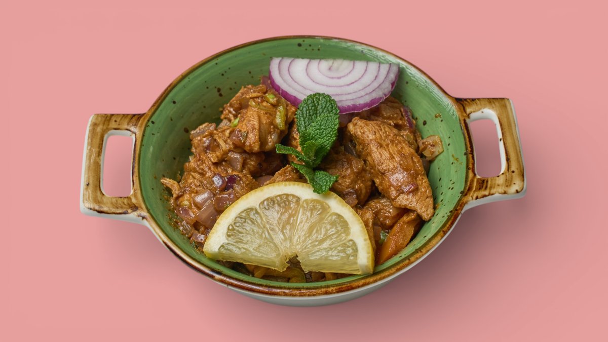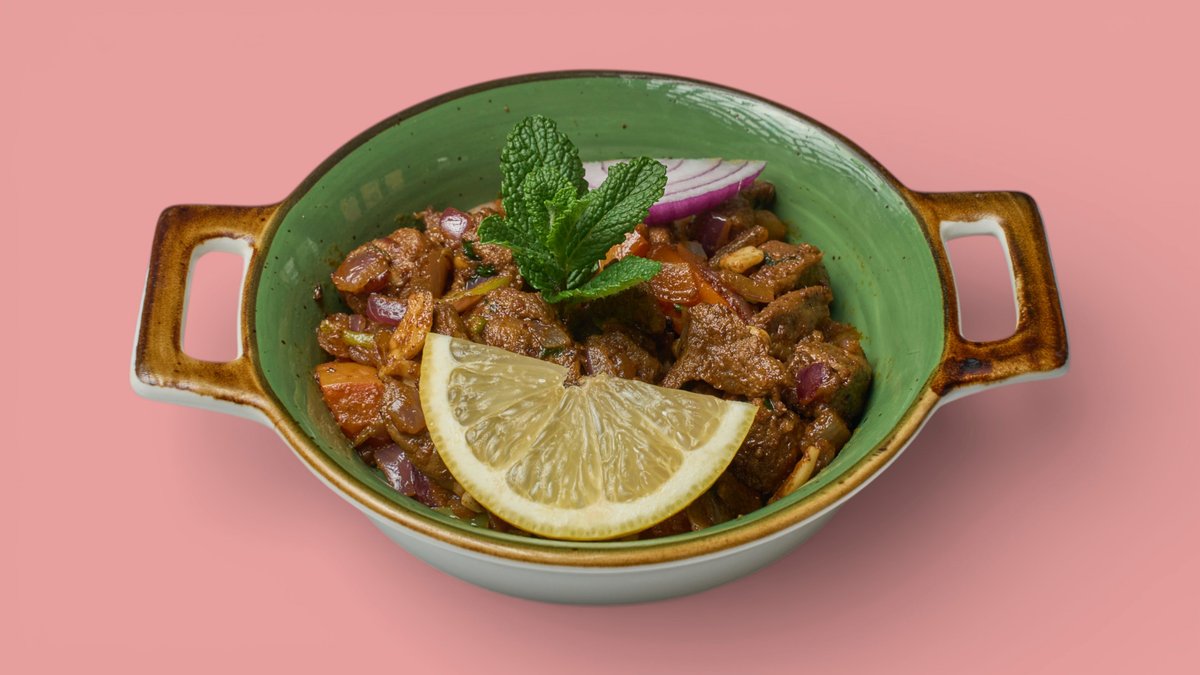 10 Stück trocken gebratenes Lammfleisch mit schwarzem Pfeffer und Curryblättern