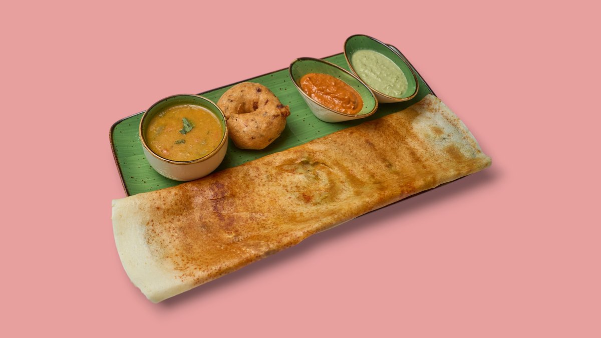 Dosai mit Ei, Sambar, Vadai und Chutney