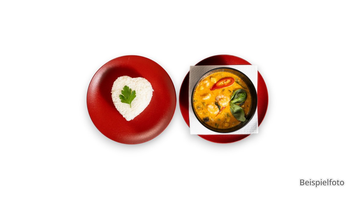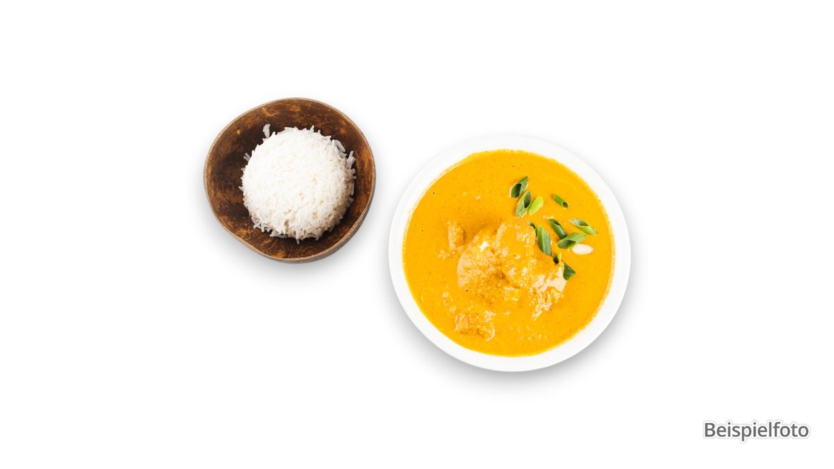 Hähnchenfleisch in würziger Currysoße mit Reis