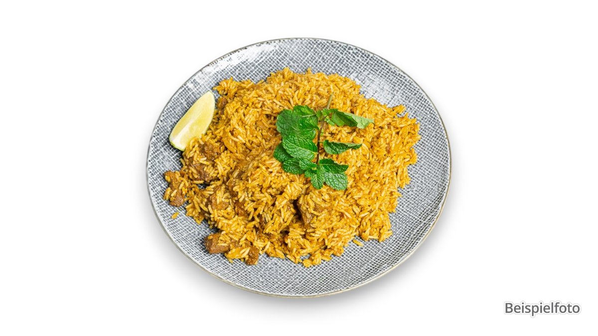 mit Lammfleisch, Basmatireis und indischen Gewürzen