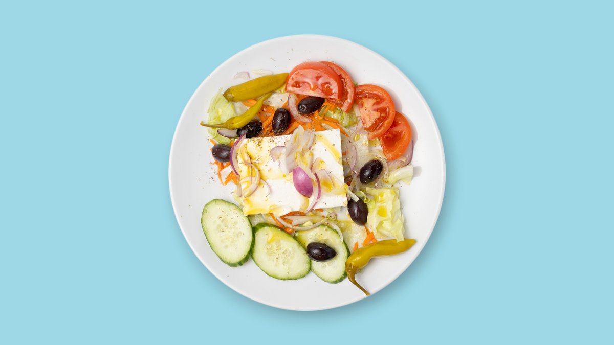 all dishes are prepared with olive oil and vinegar (“24. Gyros Salad” is prepared without olive oil and vinegar)