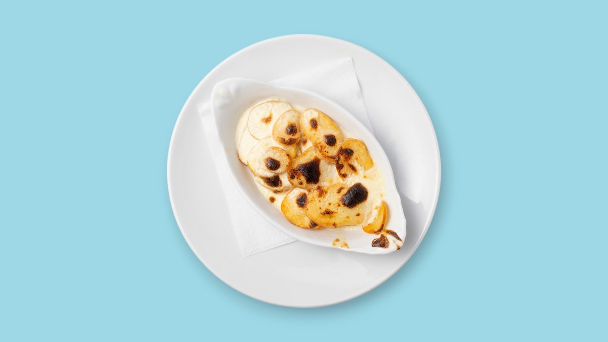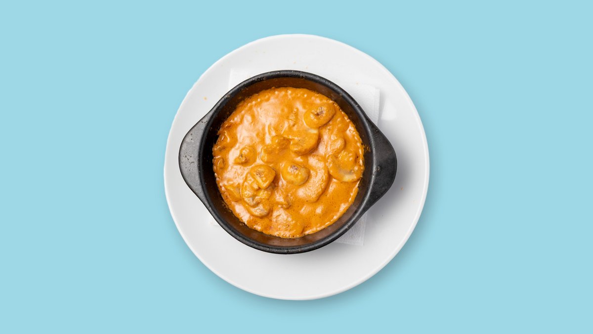 with Metaxa sauce, minced beef steak, sheep cheese and French fries