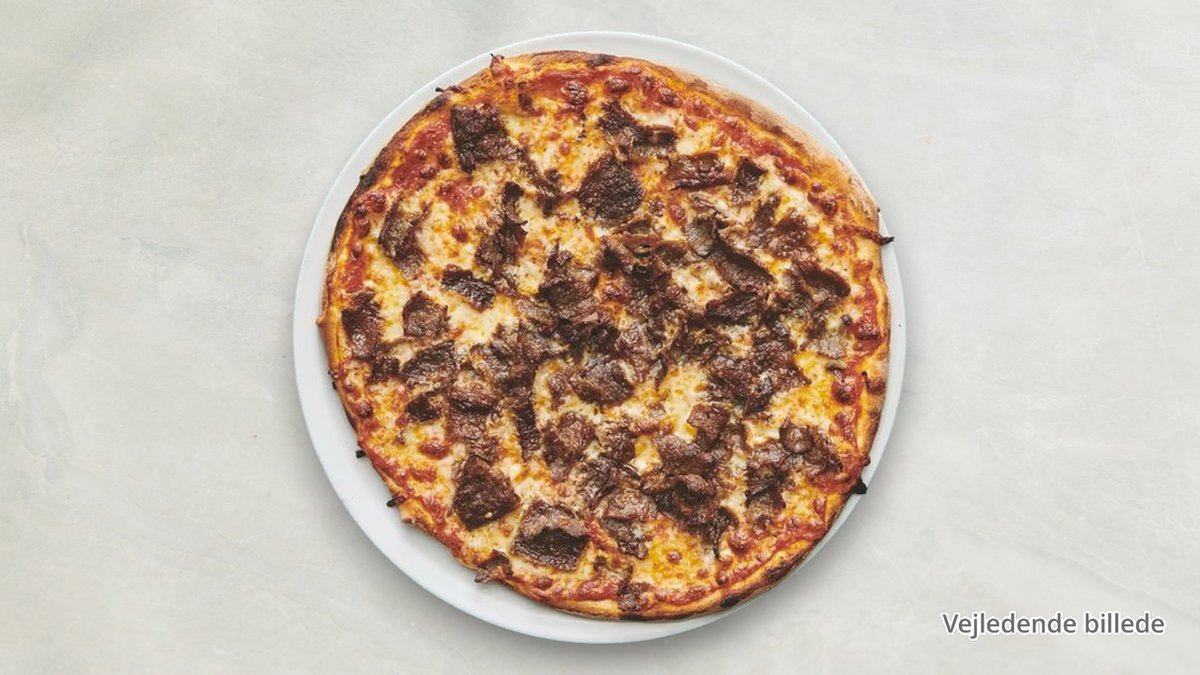 Tomatsauce, ost, løg, kebab, pepperoni, oksekød, champignon og oregano.