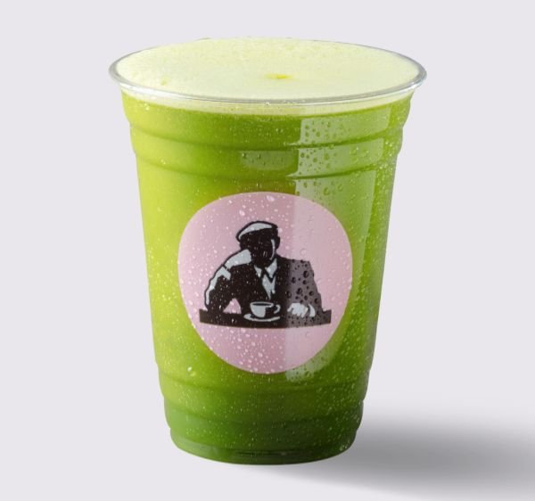 Matcha, Banana, Date Puree, Collagen & Whey Protein, Sproud M*lk, Ice