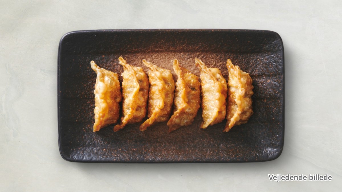Gyoza friturestegt med kylling, grøntsager. Serveres med sød chili sauce.