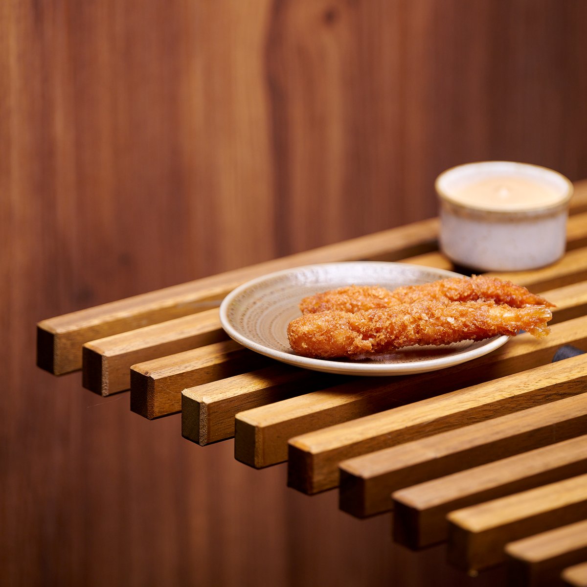 Indbagt reje, avocado, agurk, chilimayo og tobiko.