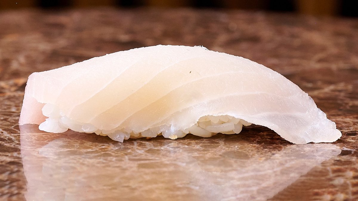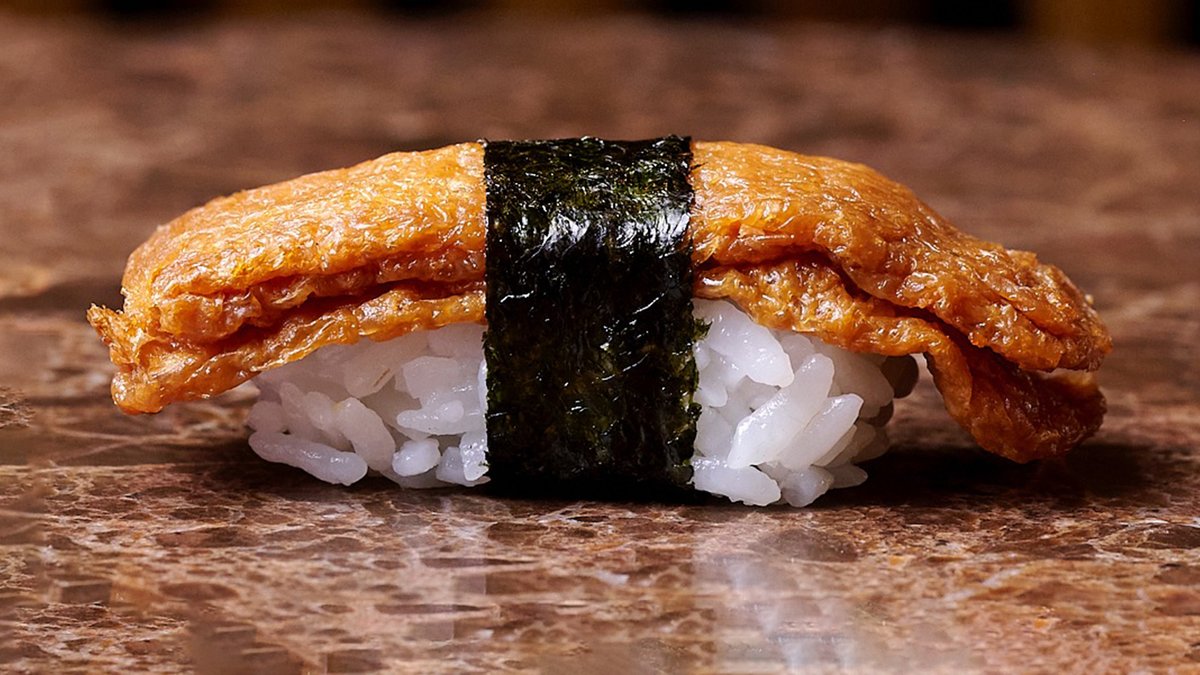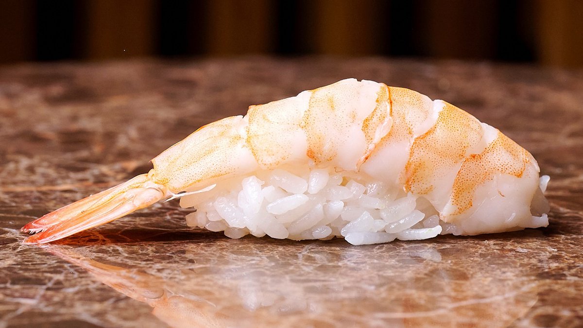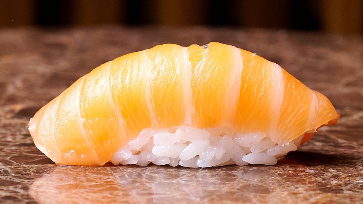Bolle af ris toppet med rå fisk eller grøntsager, kommer stykvis.