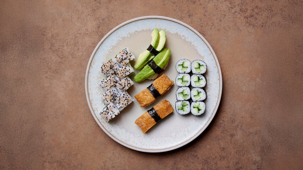 Nigiri: 2 x Tofu 2 x Avocado Uramaki: 8 x Veggie maki Hosomaki: 8 x Cucumber