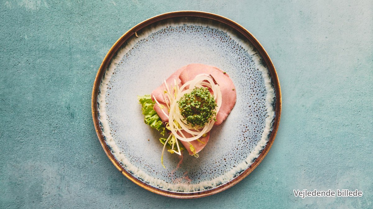Klassisk Dyrlægens natmad, m saltkød, leverpostej, sky & rå løg.