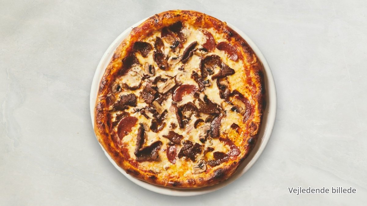Alle pizzaer kan serveres som menu med pommes frites, dyppelse og sodavand.