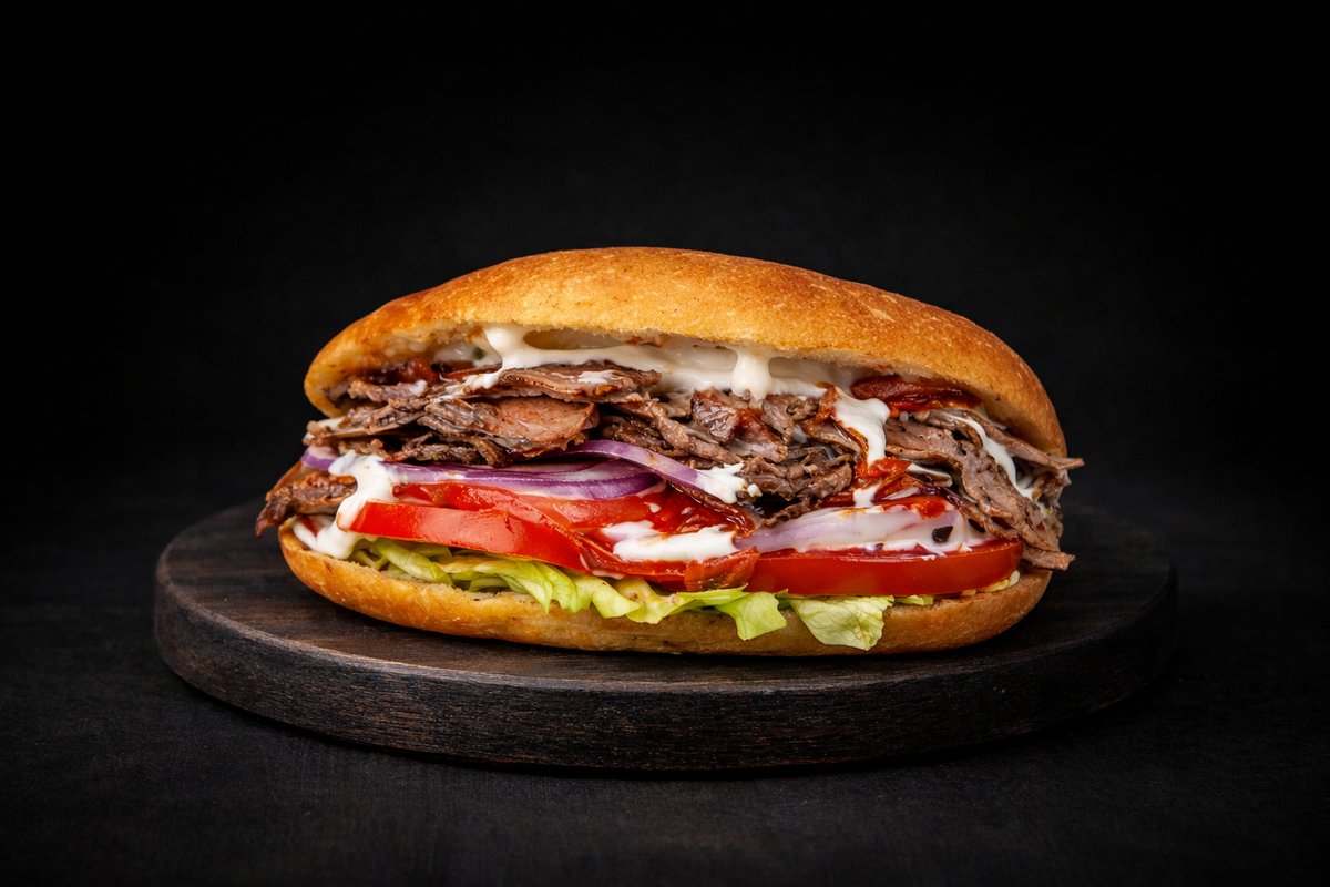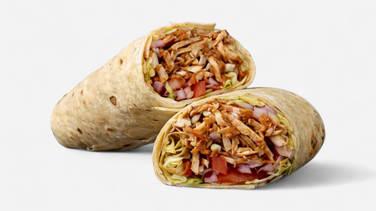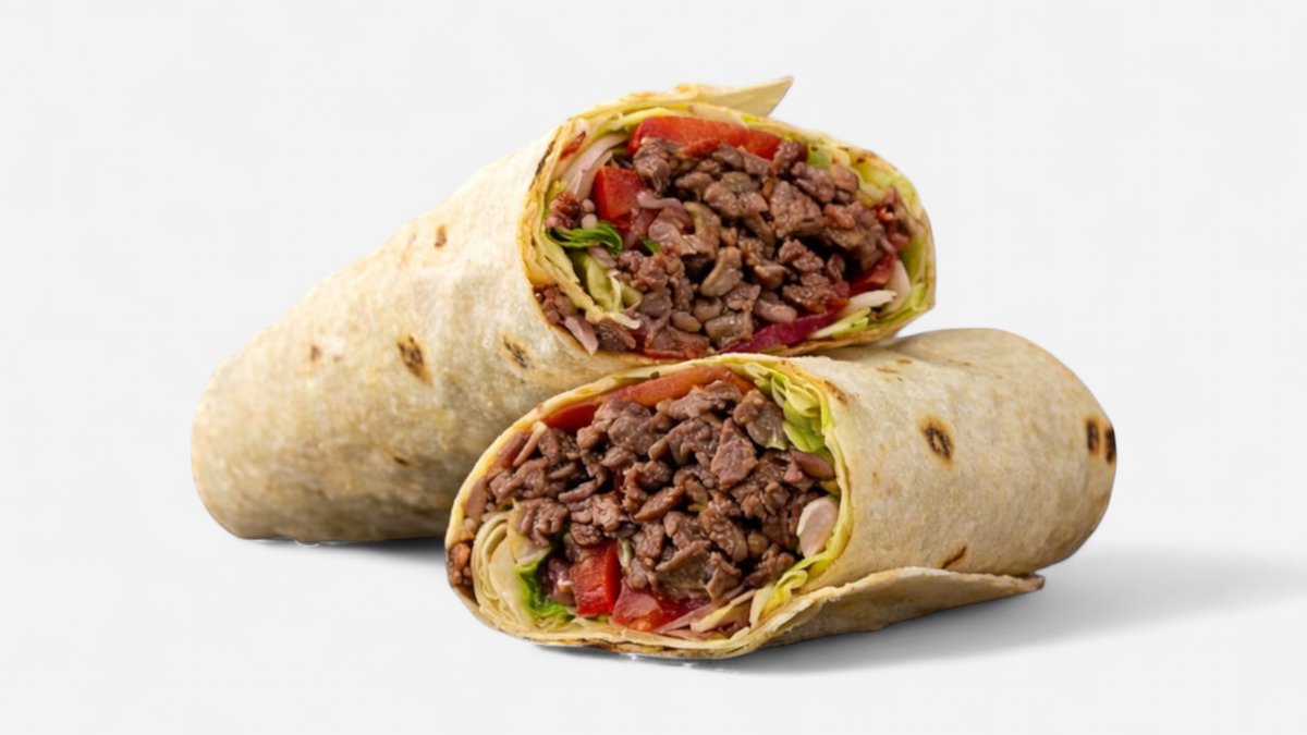 Mør oksekød pakket ind i en let og luftig pita med grøntsager og vores specielle krydderiblanding.