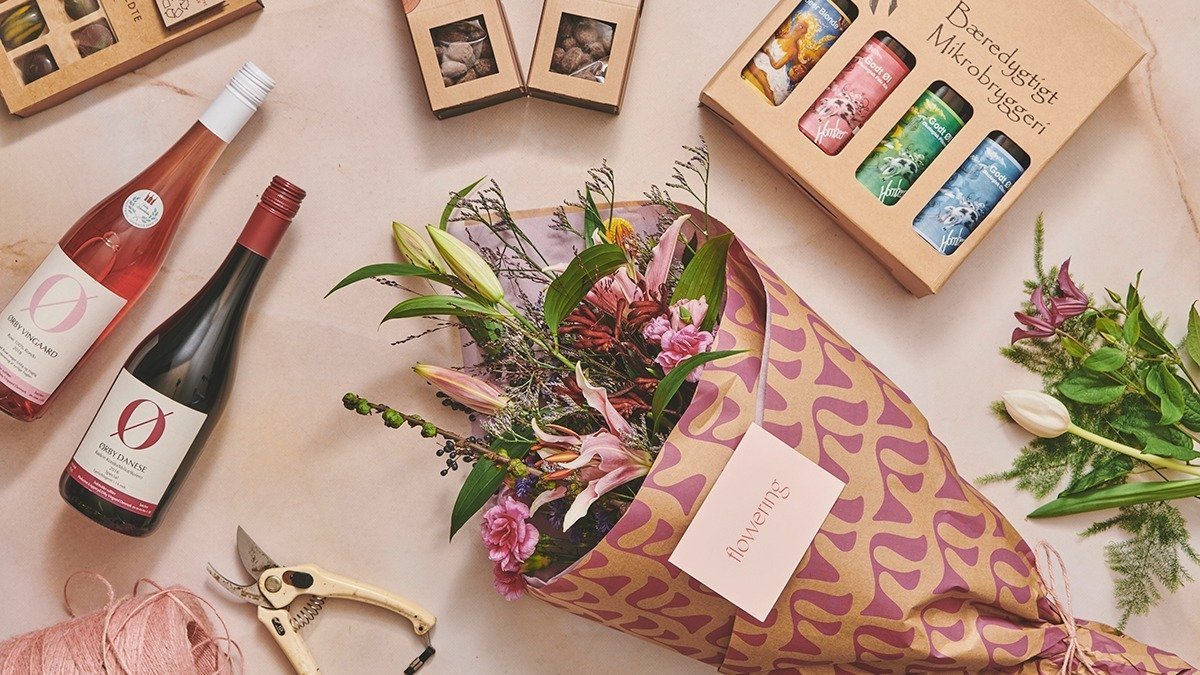 Håndbunde friske blomsterbuketter, dansk øl, vin og chokolade leveret året rundt - inkl. helligdage og søndage 💙