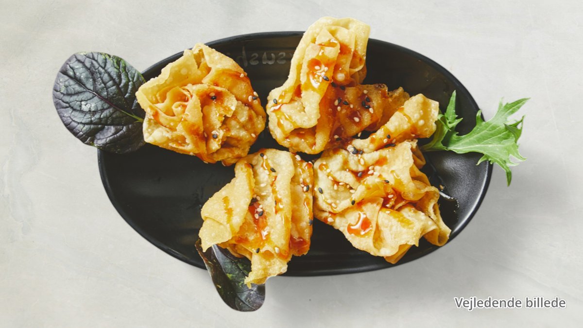 Lækre, håndlavede wontons serveret i en varm og smagfuld suppe. Vælg mellem kylling eller veggie – perfekt som en let og velsmagende forret.