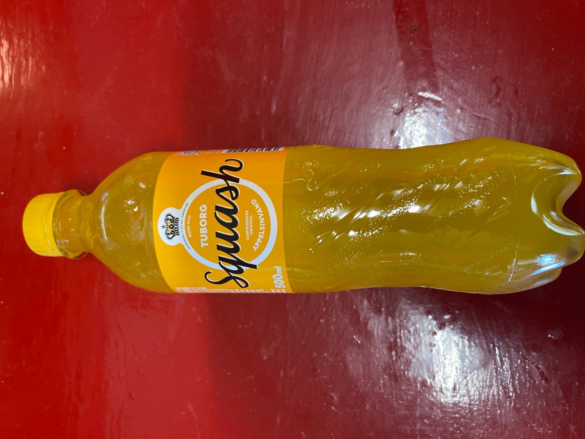 Kebabret serveret med pommes frites, salat og dressing chili mayo og en dåsesodavand