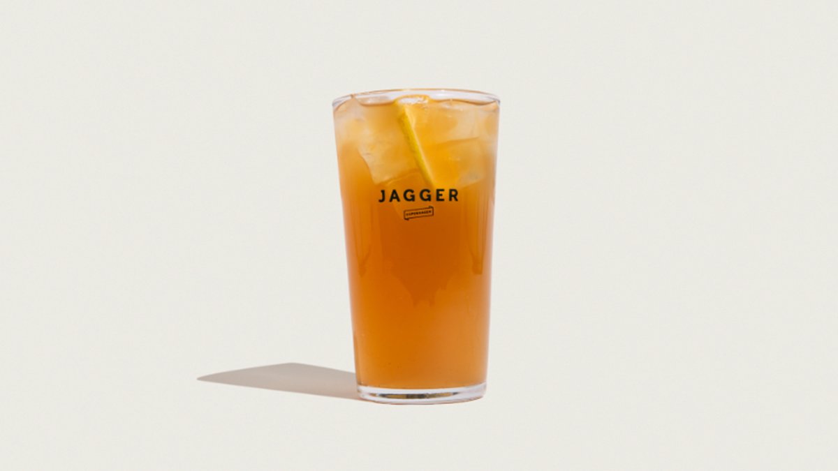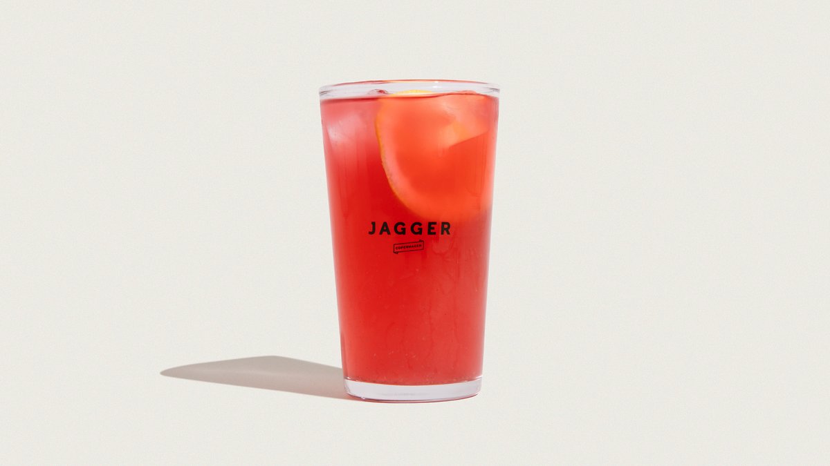 Vores økologiske, hjemmelavede lemonade med hindbær, solbær og citron.