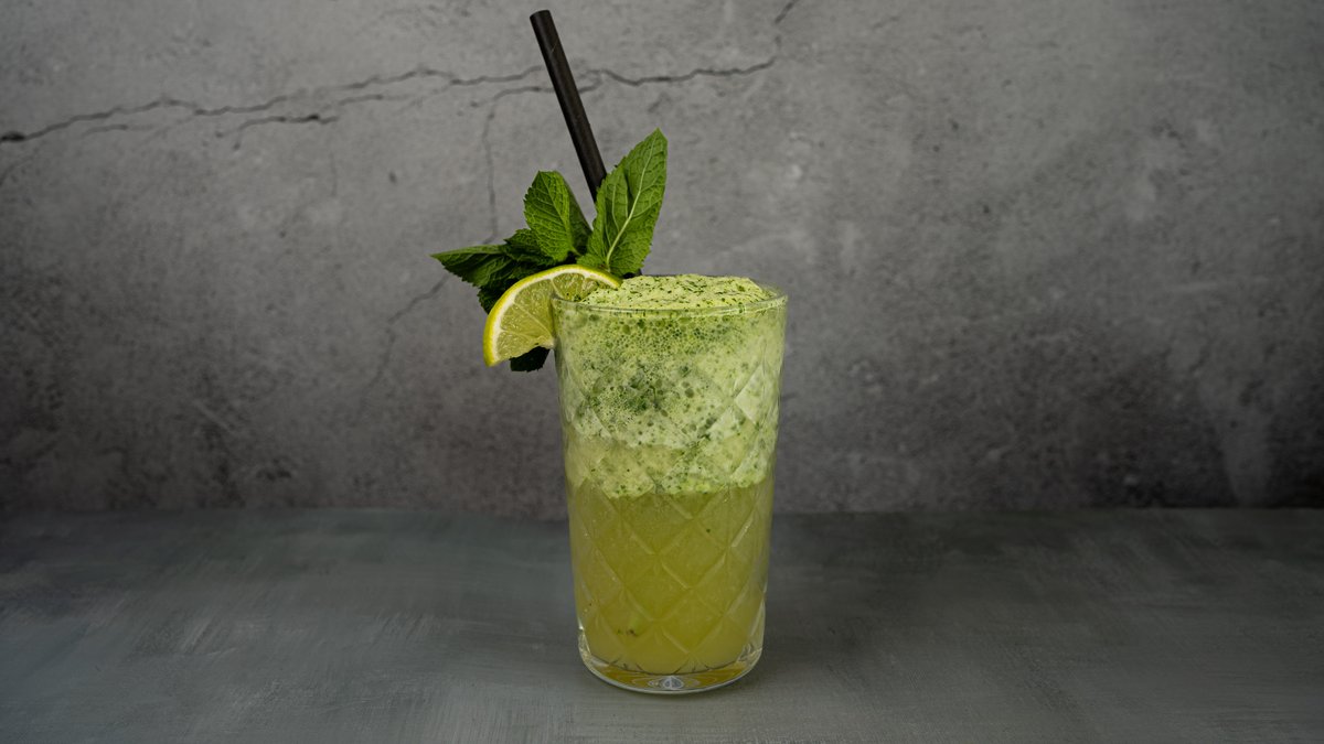 Brioche, seranoskinke, hjemmelavet persillepesto, syltede rødløg og tomat.
