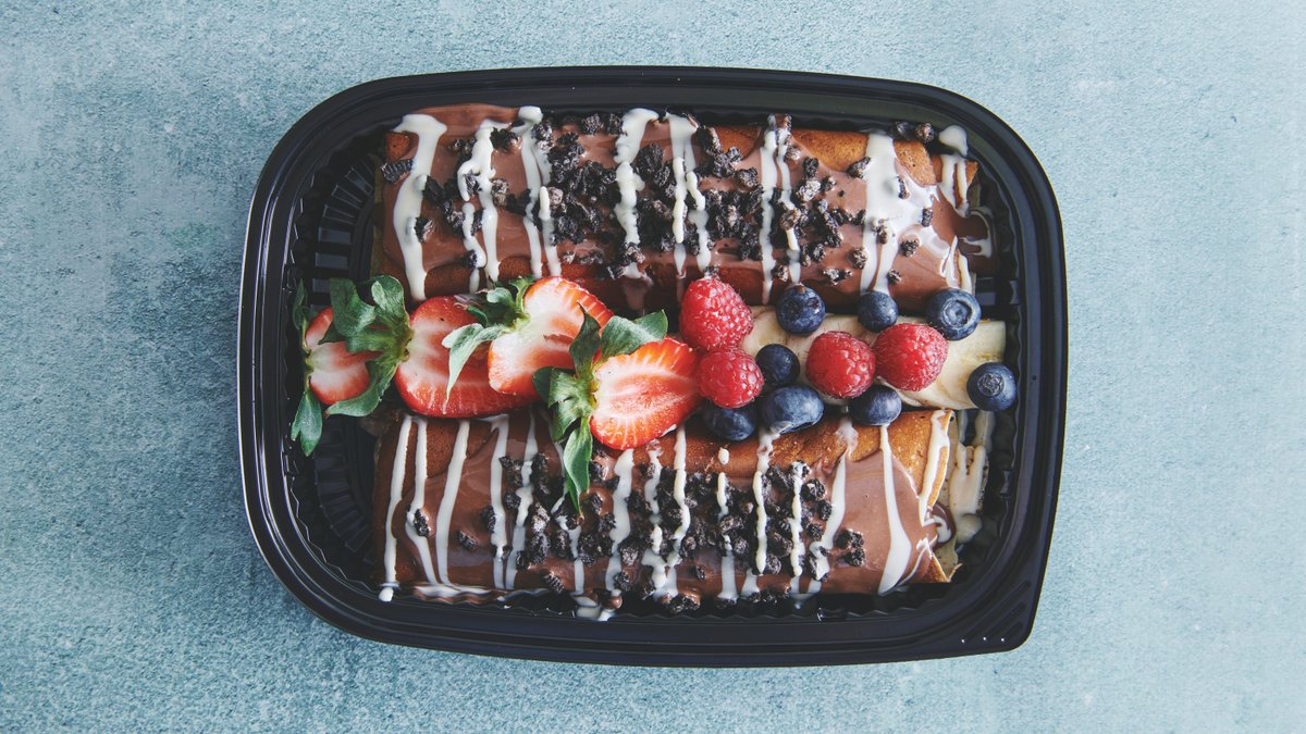 Pandekage smurt med mørk Nutella, rullet i hjemmelavet Oreo cheese creme. Toppes med Nutella, hvid chokolade sauce, friske bær og knuste Oreo kiks. Serveres med valgfri drikkevare.