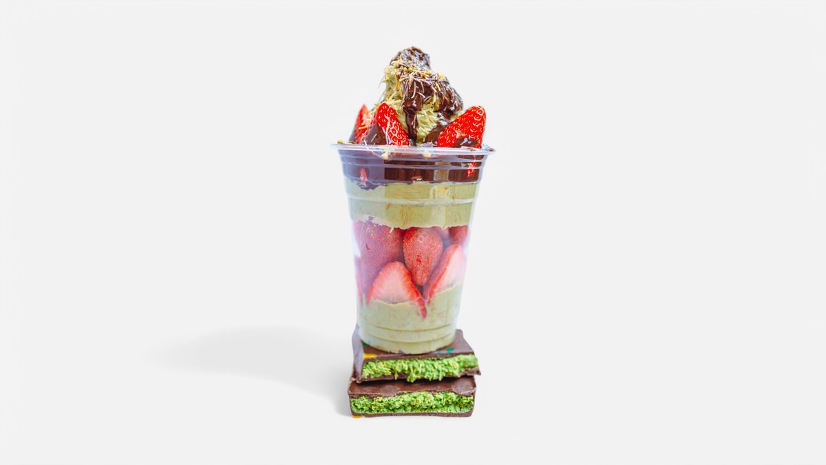2 x Valgfri is (serveres seperat) 1 x Valgfri frugt 1 x Valgfri sauce 1 x Valgfri topping 1 x Valgfri drikkevare