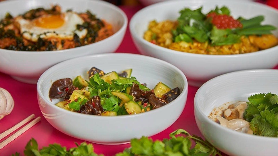 Rice noodles, mushroom, tofu, vegan sausage. Served with a free 0,33 l soda.