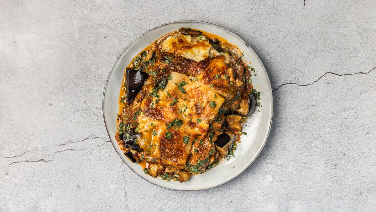 Aubergine, yoghurt, tahini, persille og dild. Minimum 10 kuverter.