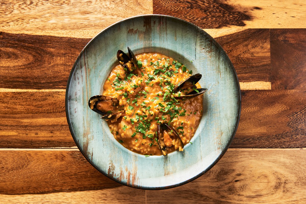Kammuslinger, rejer og blåmuslinger i en mild tomat sauce