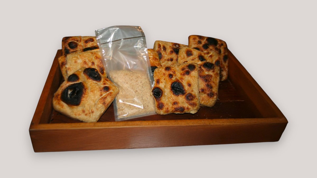 A blitzed product of Surt's house-made, oven-baked sourdough focaccia. -180 gr