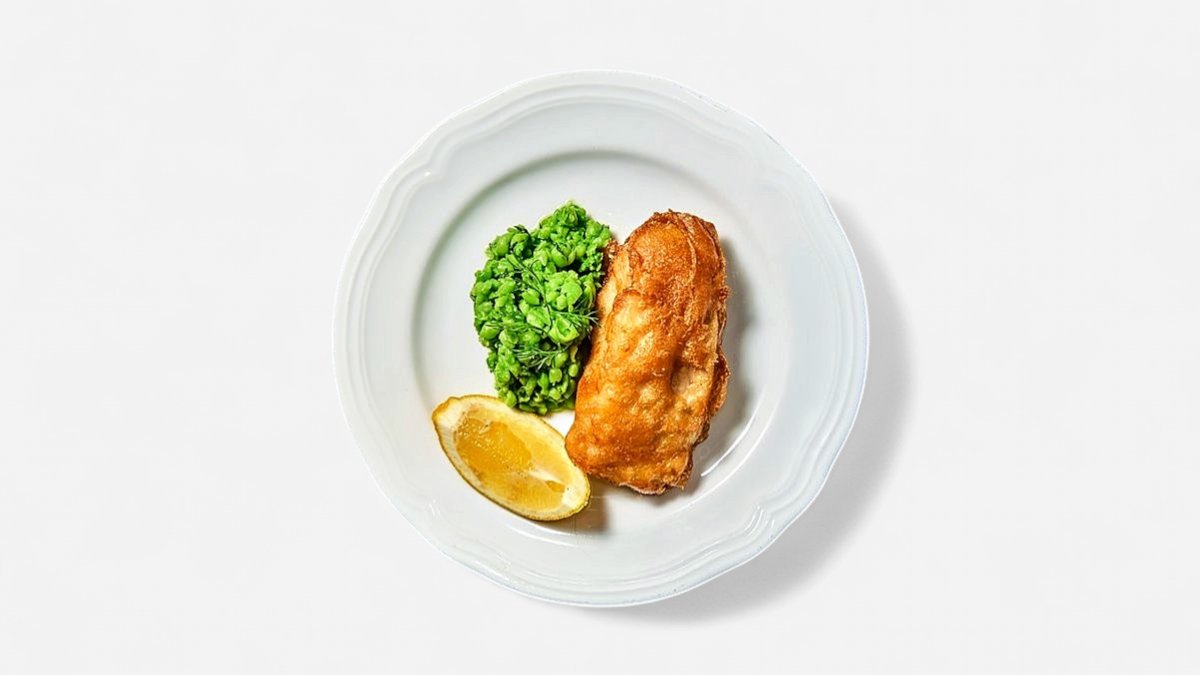 Fried chicken, salat, syltet rødløg, honning, harissa, syltet agurk, trøffelpomfritter og chilimayo.