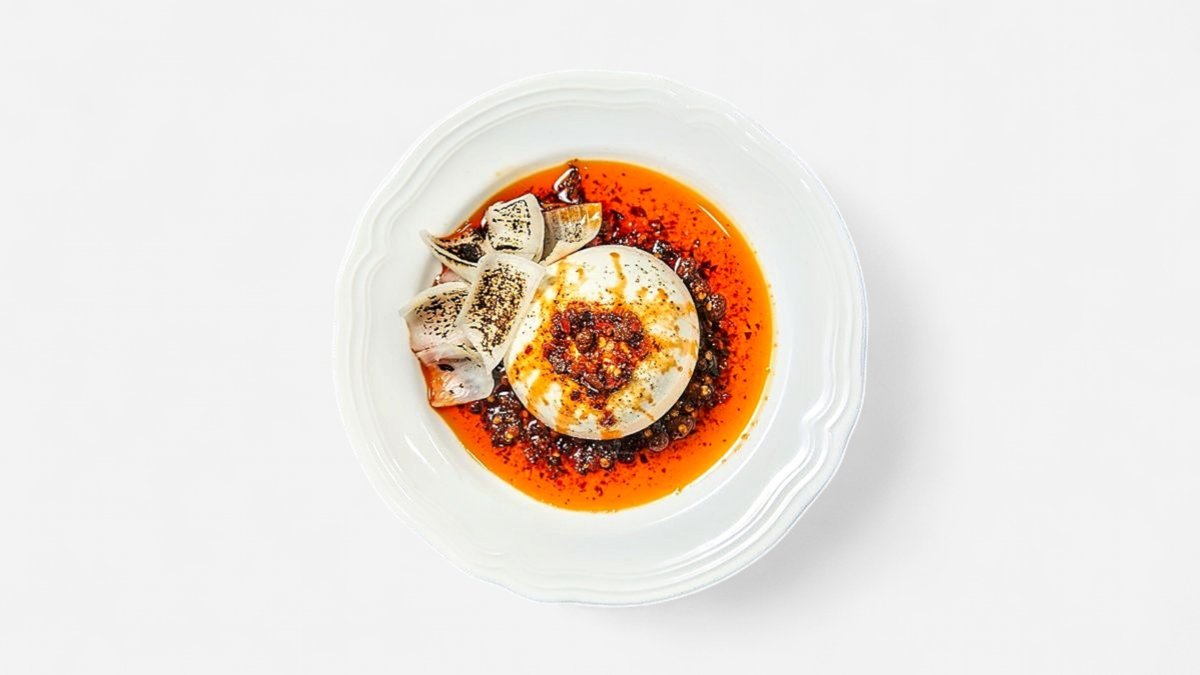 Med karamelliseret løg, modnet cheddar og trøffelpomfritter med chilimayo.