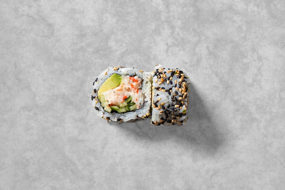 Surimi, avocado, agurk, salat og mayonnaise, toppet med jalapeñomayo.