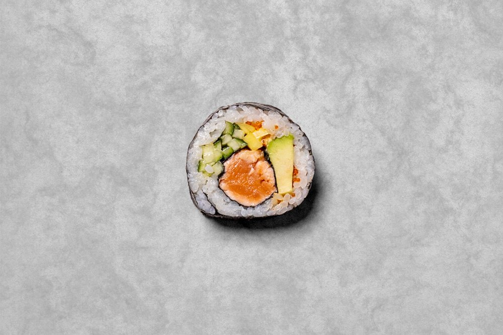 Laks, avocado, agurk og chilimayo, rullet i spicy sesam.