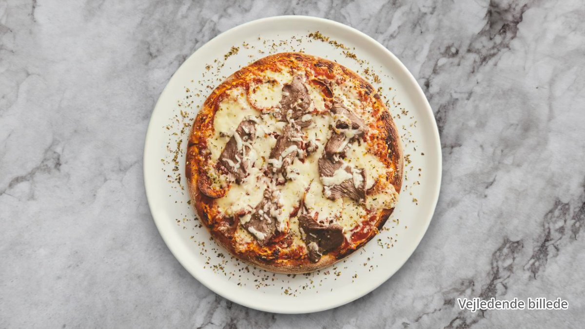 Tomatsauce, ost, hakket oksekød, pepperoni, chili og hvidløg.